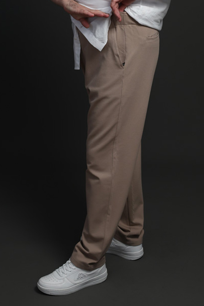 Spodnie męskie CASUAL beżowe z prostą nogawką i regulacją w pasie